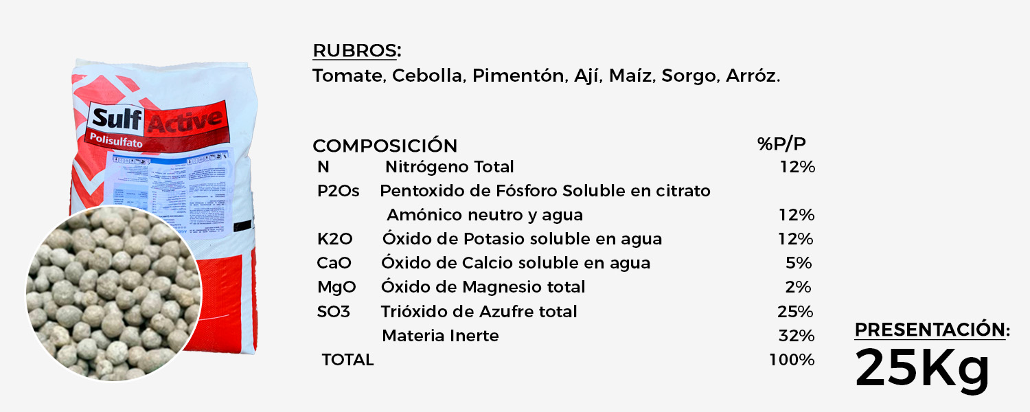 SulfActive es la línea de fertilizantes complejos avanzados y enriquecidos con polisulfato. Su composición con tres sulfatos, magnésico, potásico y cálcico altamente solubles, garantiza una fertilización más completa y eficiente de los cultivos más exigentes, mejorando los resultados y rendimientos de las fórmulas tradicionales y ofreciendo al agricultor un equilibrio perfecto entre las materias primas más eficientes y la tecnología más avanzada.