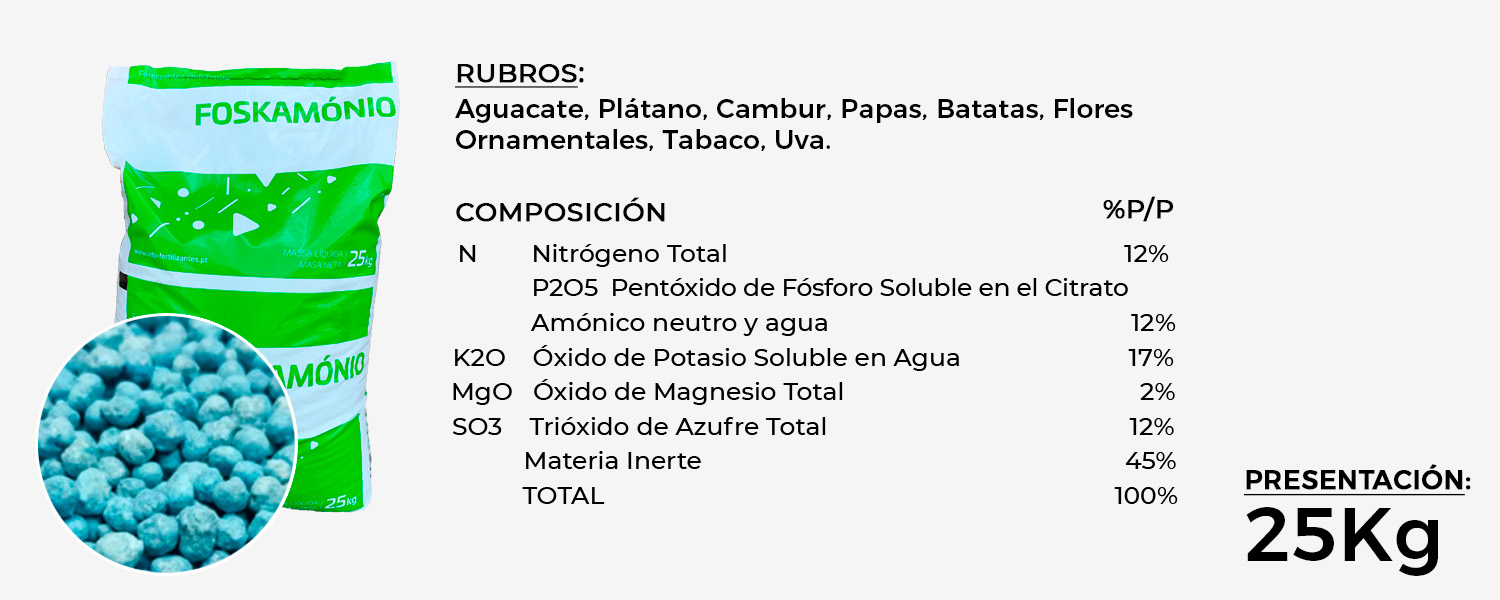 Es un fertilizante compuesto donde cada gránulo contiene Nitrógeno, Fósforo y Potasio. Así como nutrientes secundarios, que garantizan una nutrición equilibradas para satisfacer las necesidades de nutrientes en el cultivo